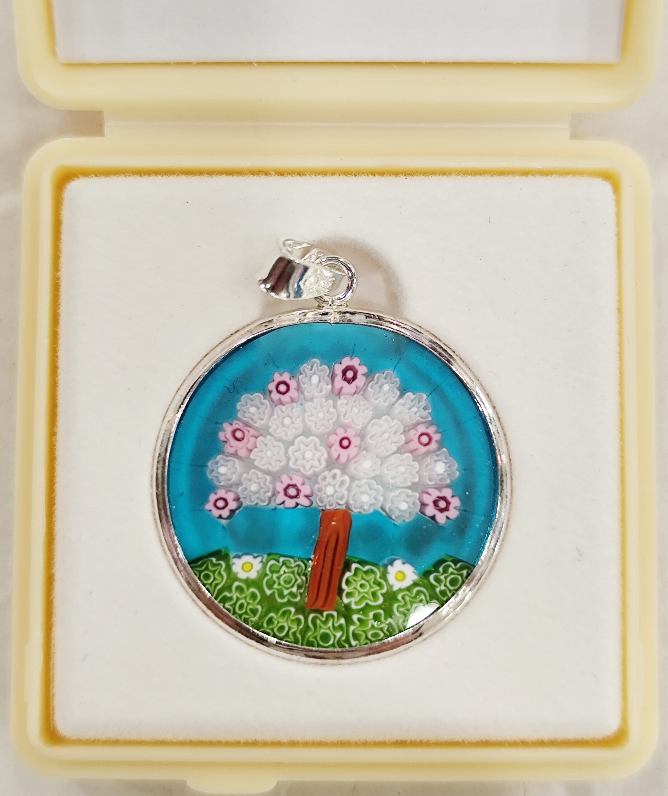Медальон Мурина от Оригинално Муранско Стъкло! Сребърен обков, проба 925. Диаметър 23мм. Придружен със Сертификат и подаръчна опаковка.