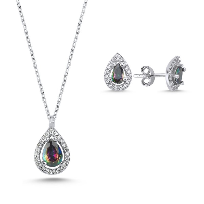 Сребърен Комплект с Мистик Топаз (проба 925) „Капка“