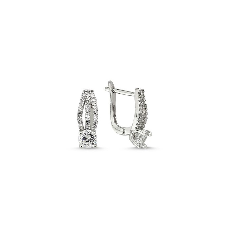 Сребърни обици, проба 925, родирани.Грамаж 3,25гр, камъни Цирконий, английско закопчаване. Придружени със сертификат и подаръчна опаковка