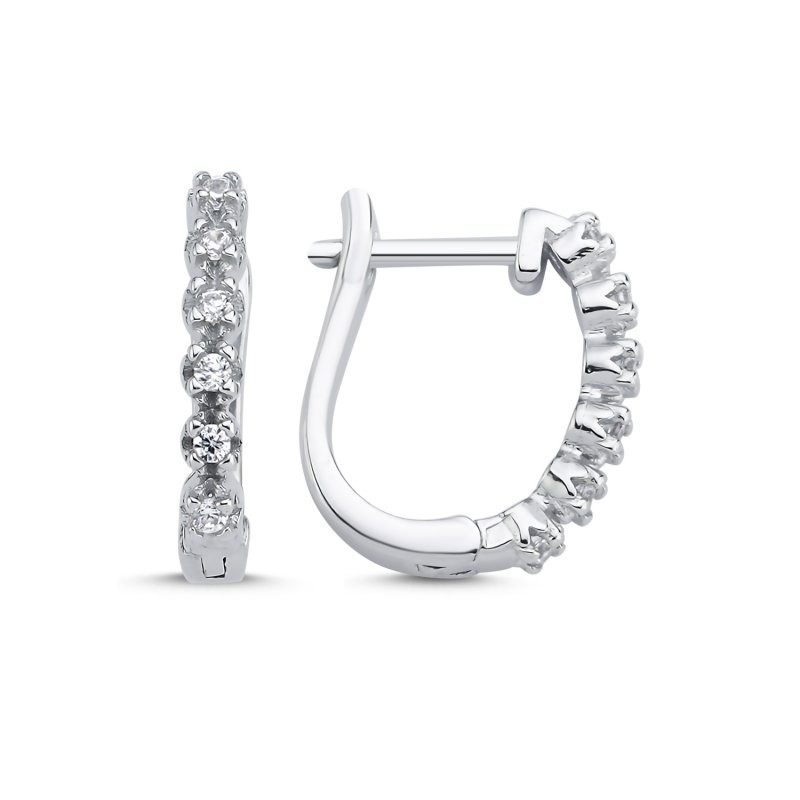 Сребърни обици, проба 925, родирани. Камъни Цирконий, грамаж 2,23гр, размер 13х15мм. Придружени със сертификат и подаръчна опаковка