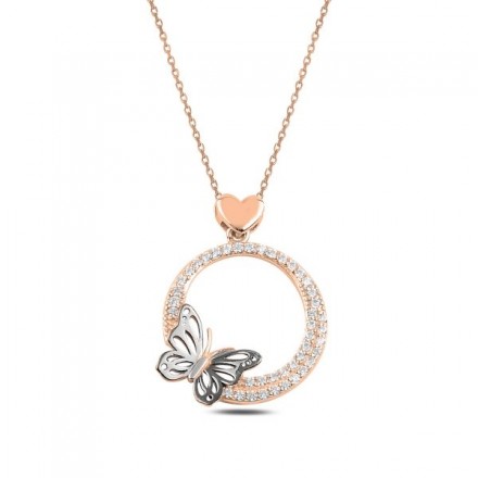 Сребърно колие (проба 925) „Кацнала Пеперуда“ Розово Злато