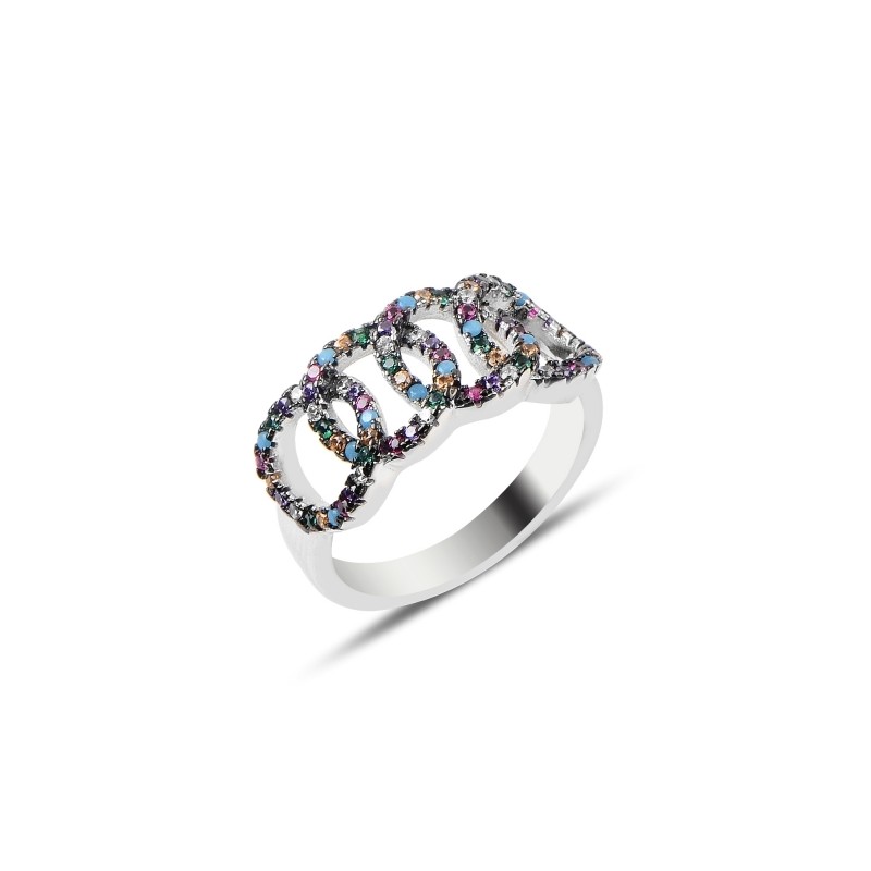 Сребърен пръстен (проба 925) с многоцветни камъни